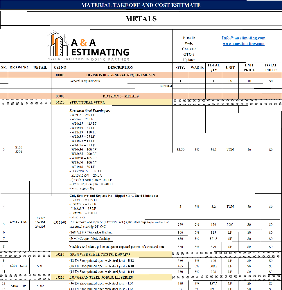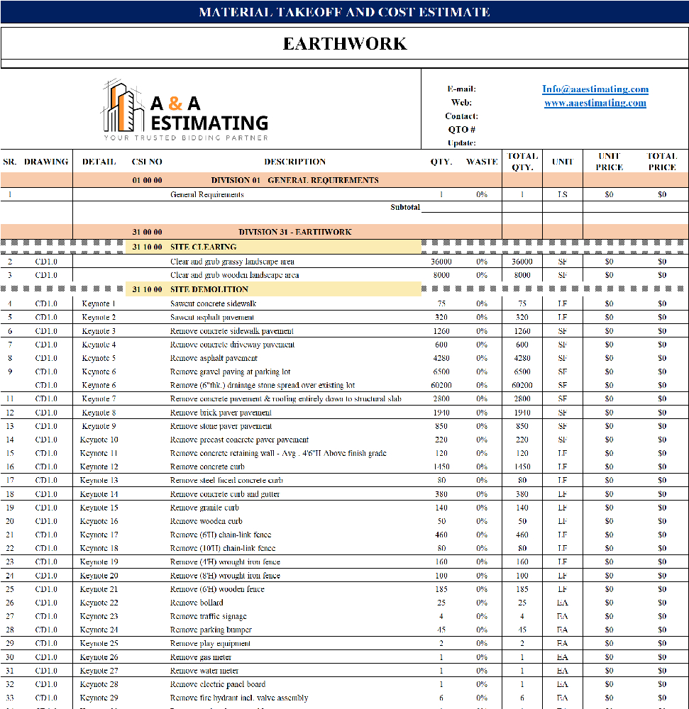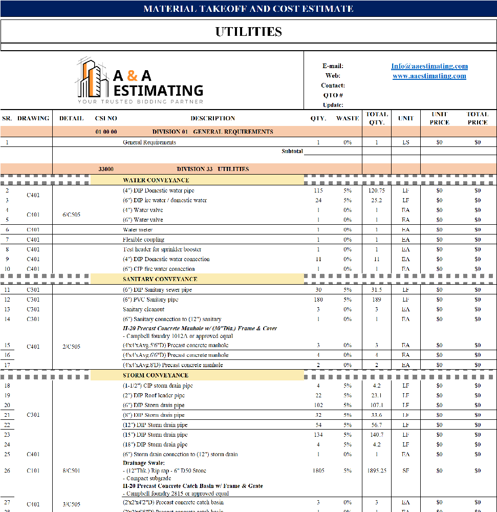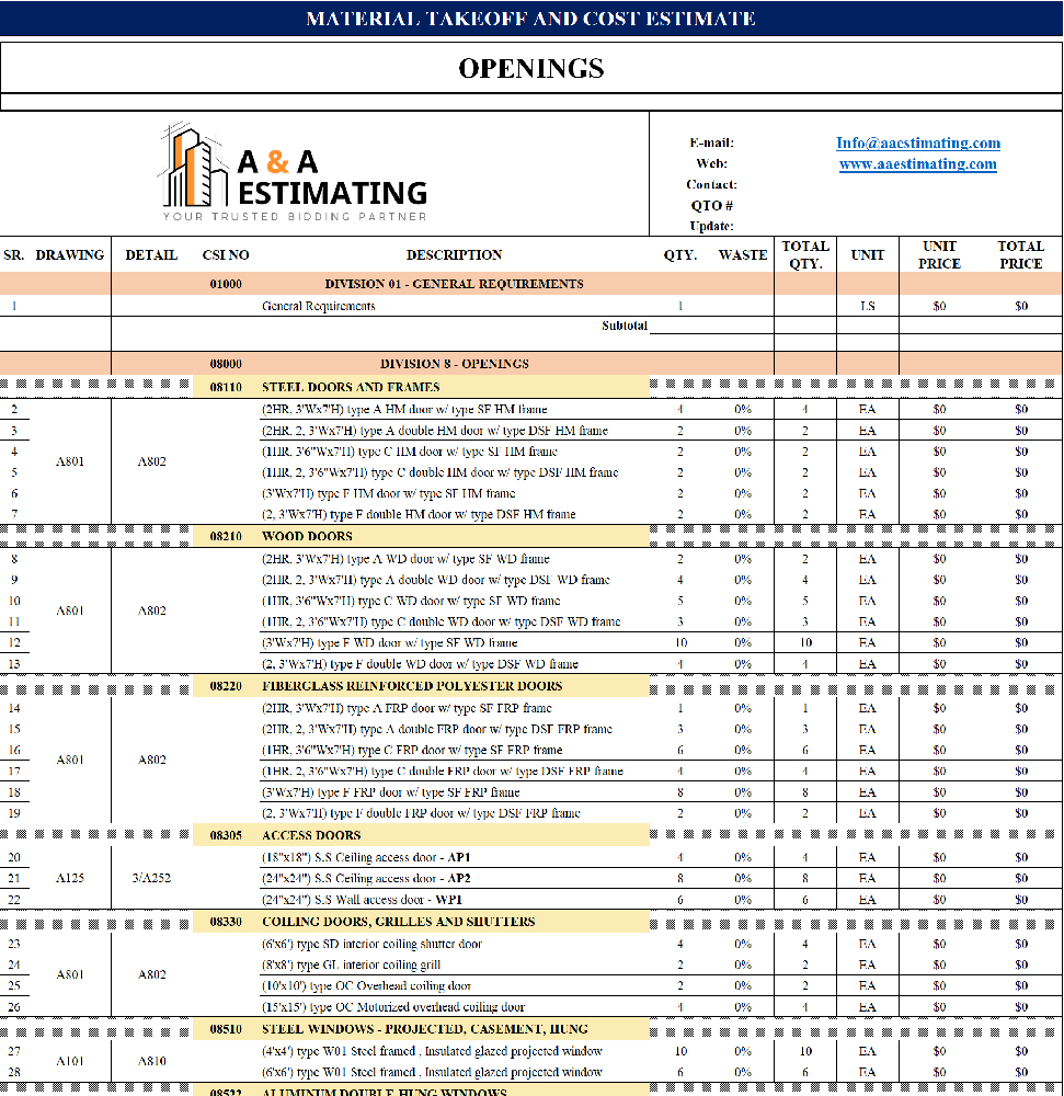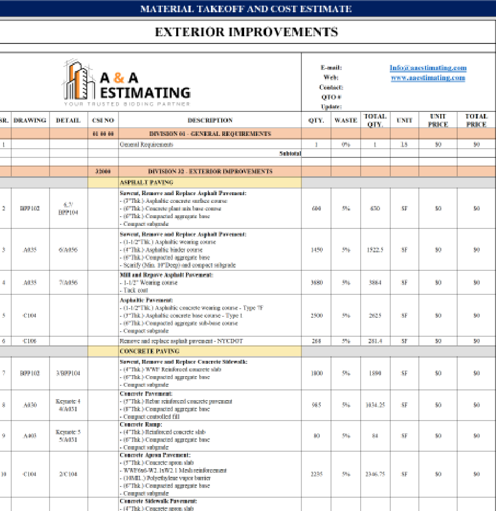 At A & A Estimating Services, we combine speed, accuracy, and affordability to help you bid smarter and build with confidence. Contact us today to request a quote and take the guesswork out of your next construction project.