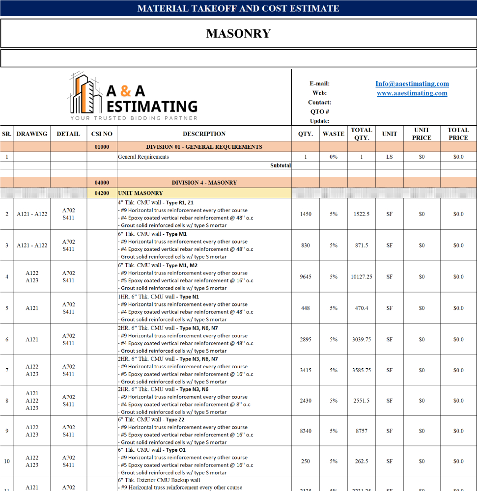 At A & A Estimating Services, we deliver detailed construction material takeoff services for residential, commercial, and industrial projects across the USA. Our team uses advanced digital estimating software to calculate exact material quantities, ensuring you avoid waste, control costs, and keep projects on schedule.